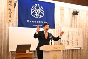 地域の交流団体にも毎月講師として呼ばれていますが、なんともふざけて見えるこの立ち姿。